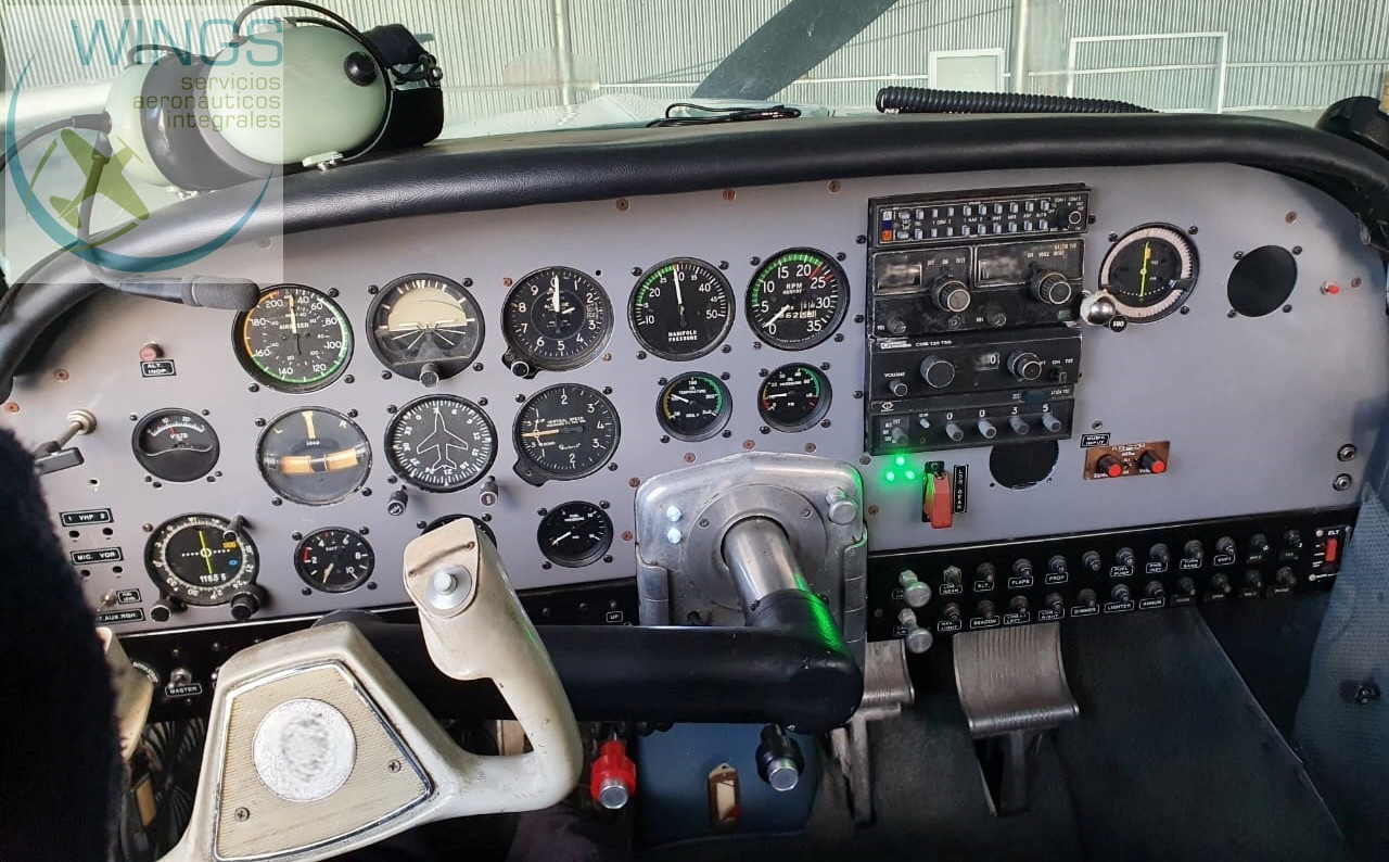Horizonte artificial, Giro direccional, Varíometro, altímetro, velocímetro. 2 VHF, 1 VOR ok 1 VOR F/S . 1 TRANSPONDER, Intercom 4 plazas. Todos los instrumentos de motor nuevos, incluye voltímetro analógico, testigo paso de hélice (1 NAV/COM King kx 175B, 1 VHF Narco 120, 1 Transponder NARCO AT60A, Intercom Flightcom 403 (4 pax) y Caja de audio Narko KMA24, ELT.
